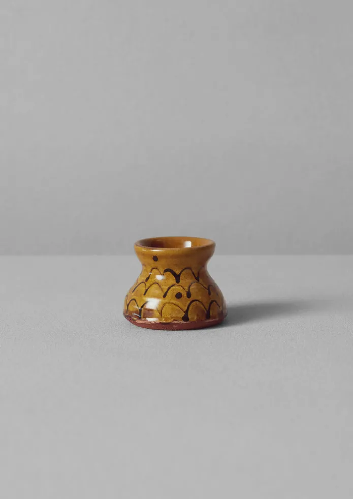 A pair of egg cups hand-thrown by Frances Savage exclusively for TOAST. Based at the Manchester Ceramics Collective, Frances trained in Stoke-on-Trent, known for its ceramics history, and Tuscany. Made from terracotta clay and decorated with a honey or cream slip and scalloped black pattern, then finished with a transparent glaze. Each varies slightly in shape and colour. Details Hand wash. Terracotta.Made in the United Kingdom.Each ceramic piece has been thrown or pressed and glazed by hand. Due to the handmade nature, there may be pleasing variations and irregularities in colour, size and shape.Approx. H 5cm x D 6cm.