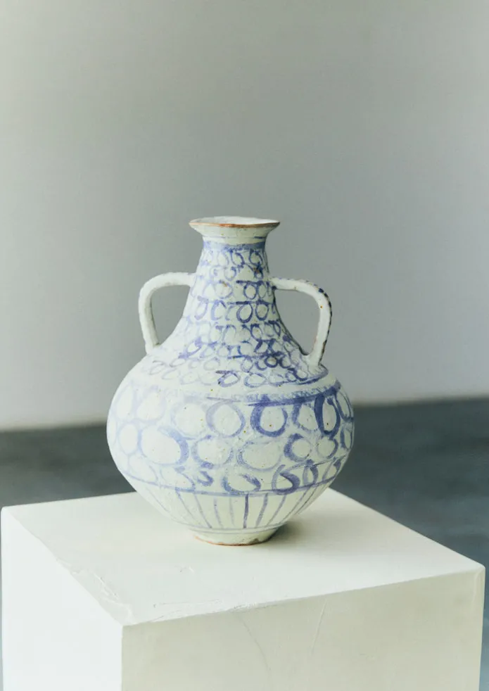 Large vase hand-built by TOAST New Maker Kate Semple, a former illustrator who discovered an affinity for ceramics during lockdown. In her York studio, she crafts organic-shaped stoneware vessels adorned with hand-drawn lines. Finished with a flecked dolomite glaze and decorated by brush with cobalt glaze. The form is created using an ancient handbuilding technique which involves stacking clay coils and blending them into the desired shape. It is watertight and suitable for both fresh and dried floral arrangements. Each varies slightly in shape and colour. This item is part of our New Makers programme. In its sixth year, five makers demonstrating excellence in skill, originality and craftsmanship have been chosen by a TOAST panel. We offer business and marketing advice, as well as a platform to sell their pieces until the end of this year, with full profits being returned to them. If you place an order today, it will be made for you and then sent to you directly from Kate Semple. Delivery is included in the price but, as this item is dispatched from the UK, import duties and local sales tax may be payable on receipt for countries outside of the UK. This is determined by the type of item you are ordering and the value. Please be aware that these charges are paid separately to the carrier and are not included in the price payable to TOAST, which only includes the item and delivery. Any charges paid on receipt are non-refundable should you choose to return the item. Details Hand wash. Stoneware. Made in the United Kingdom.Approx. H 40cm x W 25cm.