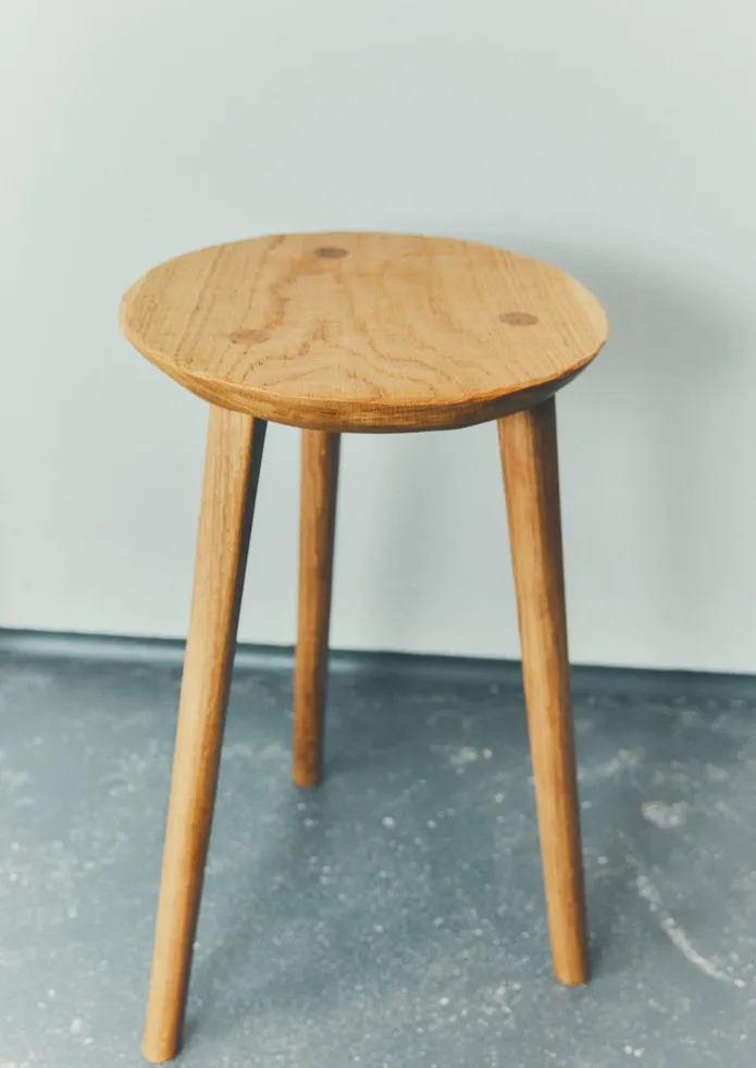 Mawnan round side table crafted from oak by TOAST New Maker Will Nock, whose furniture is inspired by his home on the Cornish coastline. He uses traditional hand tools to slowly shape locally sourced wood into functional forms, each a reflection of the rugged landscape he draws from. Tapered in a natural curve, the top is textured by hand and attached to long legs and can be used as a stool or a small side table. The table is treated with a natural oil and wax blend which leaves a tactile finish. Each varies slightly in shape and colour. This item is part of our New Makers programme. In its sixth year, five makers demonstrating excellence in skill, originality and craftsmanship have been chosen by a TOAST panel. We offer business and marketing advice, as well as a platform to sell their pieces until the end of this year, with full profits being returned to them. If you place an order today, it will be made for you and then sent to you directly from Will Nock. Delivery is included in the price but, as this item is dispatched from the UK, import duties and local sales tax may be payable on receipt for countries outside of the UK. This is determined by the type of item you are ordering and the value. Please be aware that these charges are paid separately to the carrier and are not included in the price payable to TOAST, which only includes the item and delivery. Any charges paid on receipt are non-refundable should you choose to return the item. Details Oak finished with Osmo. Surface clean only. Made in the United Kingdom.Approx. L 29cm x W 29cm x H 50cm.