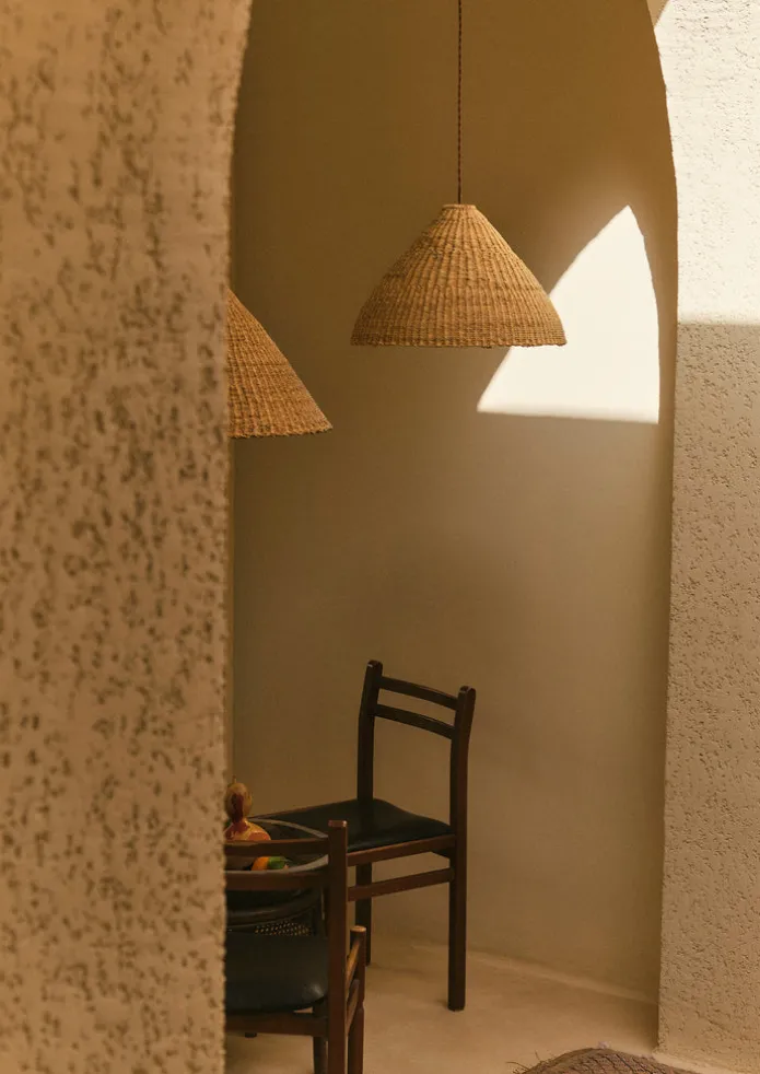 Bell-shaped pendant shade handwoven by artisans in Ghana exclusively for TOAST, supported by Frafra Baskets. Made from Veta Vera grass which grows locally, also known as elephant grass. Shipped pressed inwards from the artisans in Ghana. To reshape it, simply sprinkle water on the entire basket, straighten it by hand and allow it to dry on a flat surface. Details Veta Vera glass. Gentle dust or damp cloth clean only.Suitable for indoor use and LED light bulbs only. Sold as a single pendant lampshade only, with no fitting included. When installing a new light fitting, always use a qualified electrician.Being handwoven each piece will slightly vary in shape and size.Made in Ghana.Being handmade, no two of our pieces will be alike. Each may come with pleasing variations and irregularities, recalling the hand of the maker.Approx. D 44cm x H 36cm.