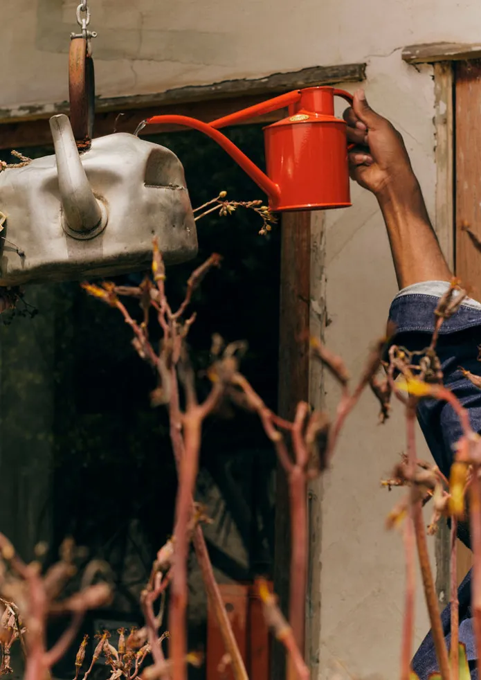 Galvanised steel Fazeley Flow indoor watering can by British company Haws, realised in a vibrant Nasturtium colourway exclusively for TOAST. The world’s oldest watering can company, Haws was founded by John Haws, the inventor of the watering can design they still produce. Originally from Clapton in London, John designed his own watering can in 1884 after struggling to grow vanilla plants in Mauritius during his British colonial service. His invention – comfortable to carry and with a non-drip spout – was a success in his lifetime, but Haws died in 1913 before having the chance to accept a Royal Horticultural Society medal and an invitation to the inaugural Chelsea Flower Show in 1913. Now, the company is led by brothers Andy and Rich Pennock, building on the company’s rich 130-year heritage. Details Galvanised steel. Powder coated. Wipe clean, rinse well after use with feed. 5 year warranty. Made in the United Kingdom.Capacity two pint. W 34cm x L 11.5cm x H 16cm. Weight when full 1.3kg.