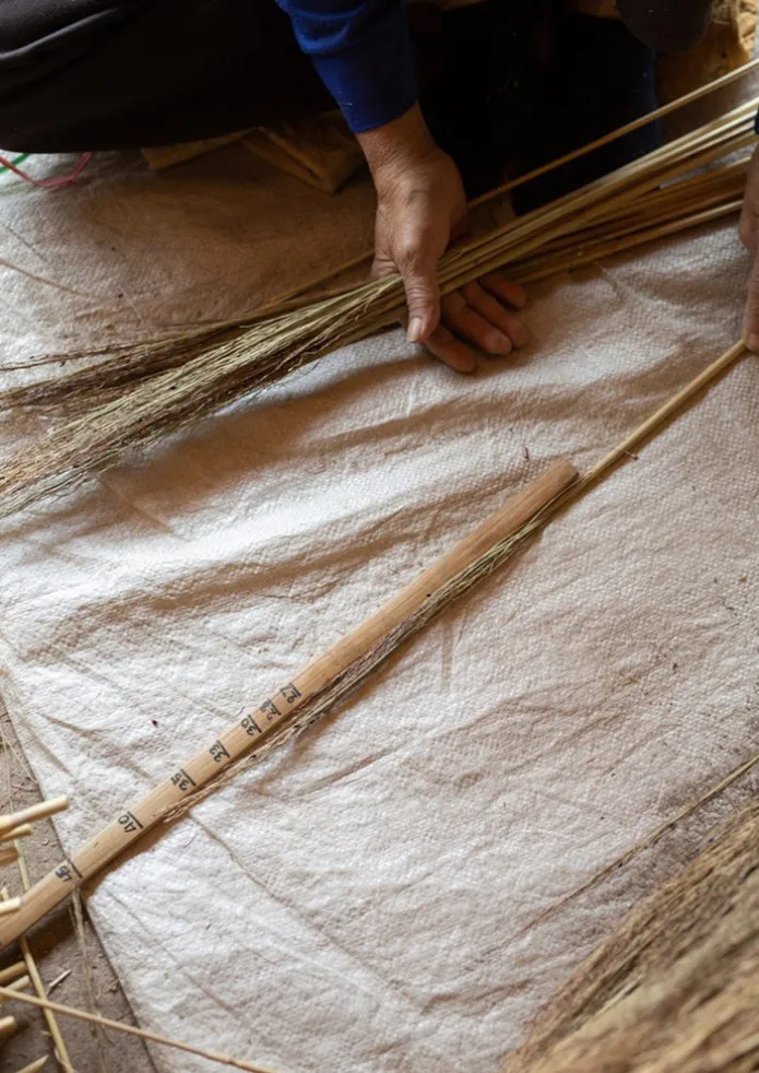 Broom handcrafted in Thailand by artisans from sorghum grass which is long-lasting and pollen-free. Many of the makers h…