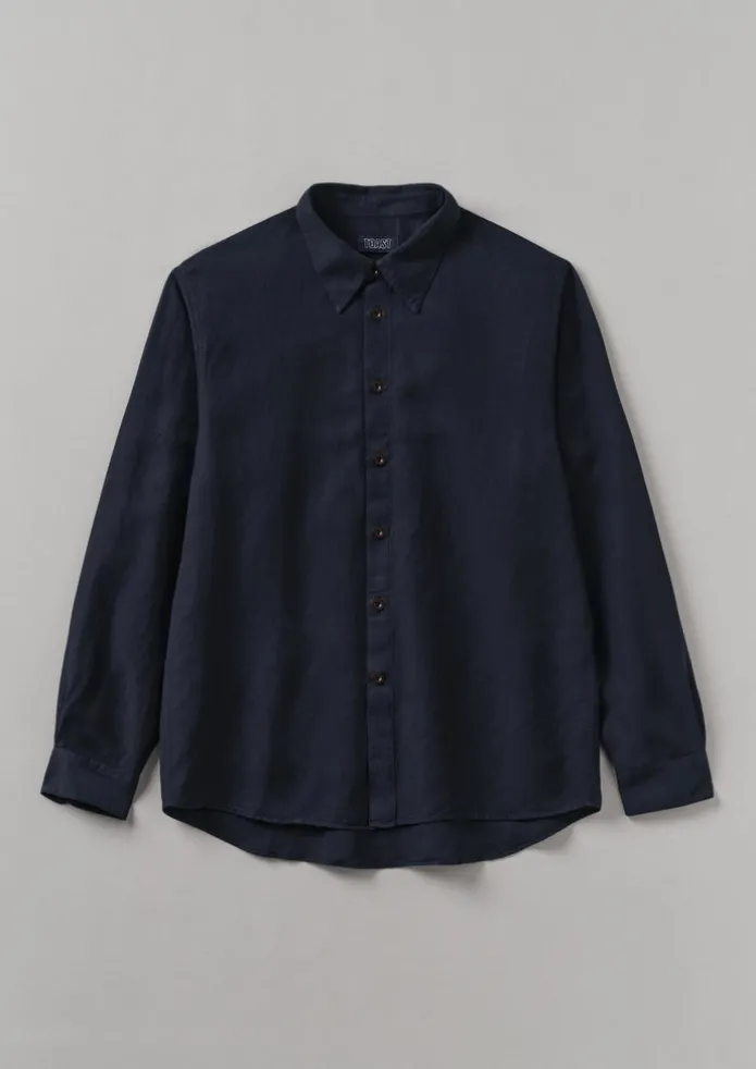 Made from a lyocell and linen blend, our shirt has a soft drape and is finished with a micro herringbone pattern. It is accented by a large point collar and curved hem. Part of our Menswear collection. Lyocell linen blend. Large point collar. Back box pleat. Side hem slits. Corozo buttons. Details Machine wash 30ºC. 74% lyocell, 26% linen. Made in Portugal.Variations/unevenness of colour and gradual fading are characteristic of garment dyeing. The light coloured base of the fabric may show occasionally at stitching points, this should not be considered a defect. Size & Fit Easy fit. Length: Mid hip. Sleeve: Full length. Studio model Lohit is 6ft 2in/189cm tall and is wearing a size M.