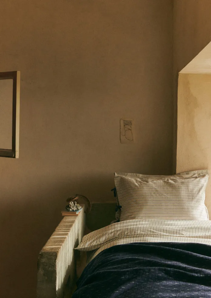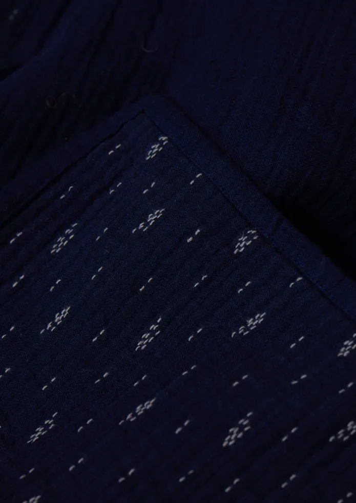 An intricate dobby stitch runs across our soft throw. Woven on a dobby loom from indigo cotton and washed for a puckered…