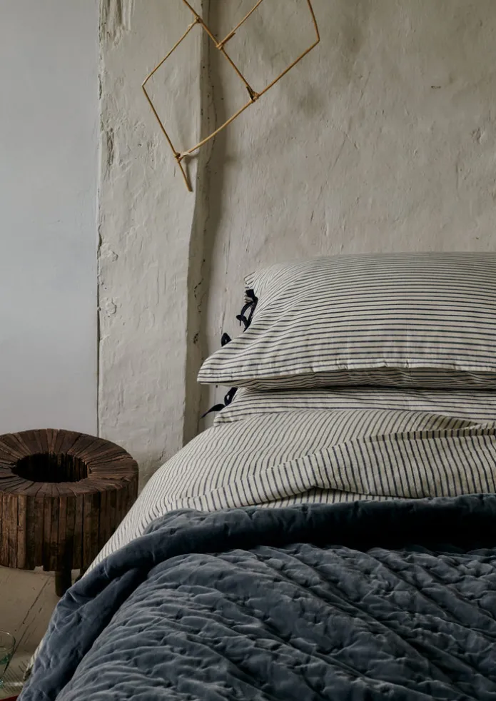 Warming throw crafted from soft and lustrous cotton velvet, then quilted by hand. Cosseting and quite weighty, with a slubby linen reverse and cotton wadding. Created in collaboration with Glasgow-based homeware designer Niki Jones. Details Dry clean only. Front: 100% cotton velvet. Back: 100% linen. Filling: 100% cotton.Made in India. 140 x 220cm.