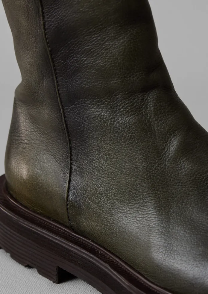 Boots crafted by Sturlini in a 40-year-old factory in the Tuscan countryside using traditional techniques. Made from supple vegetable-tanned leather hitting at the mid-calf, set on a chunky tread sole. Vegetable-tanned leather. Tread sole. Mid-calf length. Details Vegetable tanned leather upper, EVA sole.Made in Italy.Heel height 4cm.