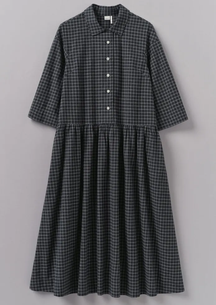 Women TOAST Cashmere | Loungewear-Graph Check Cotton Cashmere Shirt Dress