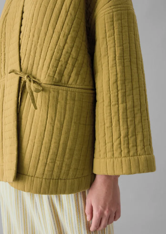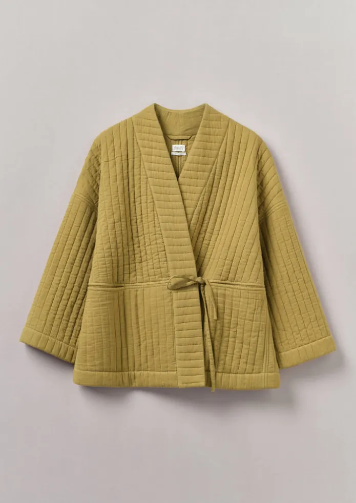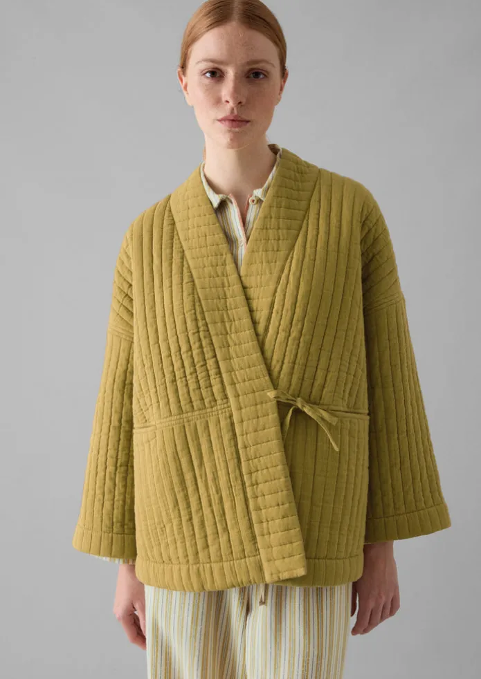 Our cocooning gown is crafted from double cloth gauze, cut to a boxy shape with wide, cropped sleeves and a soft quilted…