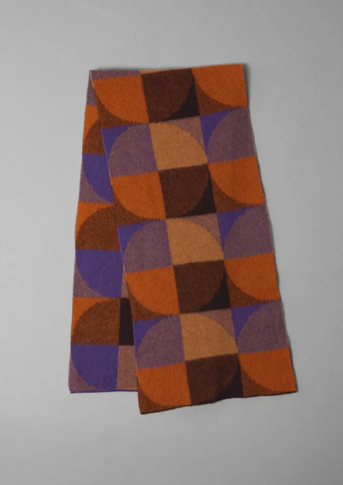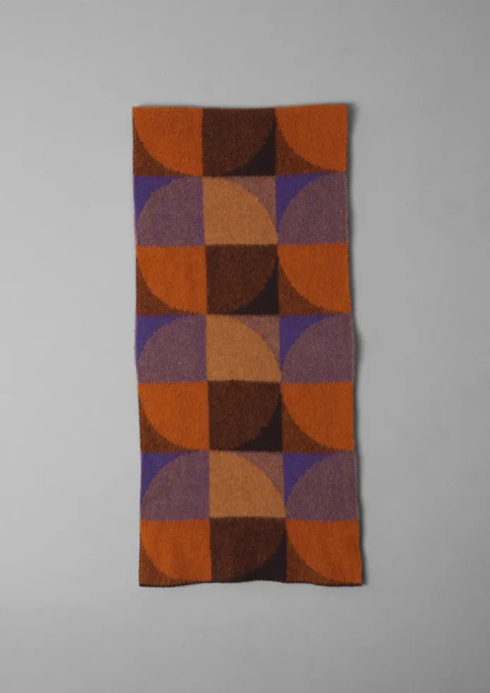 Our warm and vibrant colour-block scarf is knitted in Scotland from UK-spun wool by a company which traces back to 1845. With a jacquard pattern that makes it reversible, and a soft, gently felted and brushed finish. Details Hand wash. 100% wool. Made in the United Kingdom.Soft yarns are liable to pill to some extent, even when using those of the best quality. To take good care of them remove any pills using a pilling comb and protect them from sharp items or jewellery that may catch or snag.Length is 180cm.