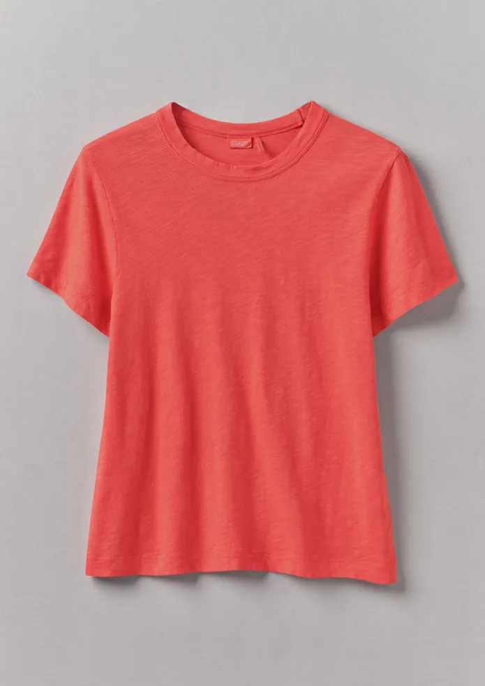Our Sadie boy tee is garment-dyed for a rich depth of colour. Crafted from soft organic cotton jersey to a straight shape with a high round neckline, then finished with twin-needle stitching at the edges. Soft organic cotton jersey. Garment-dyed. Straight shape. High round neckline. Edge twin-needle stitching. Details Machine wash 30ºC gentle cycle. 100% cotton. Made in Portugal.These cotton fibres have been grown in a chemical and pesticide free environment.Variations/unevenness of colour and gradual fading are characteristic of garment dyeing. The light coloured base of the fabric may show occasionally at stitching points, this should not be considered a defect. Size & Fit Regular fit. Length: Mid hip. Sleeve: Short sleeve. Neck: Crew.Studio model Nova is 5ft 9in/175cm tall and is wearing a size S.