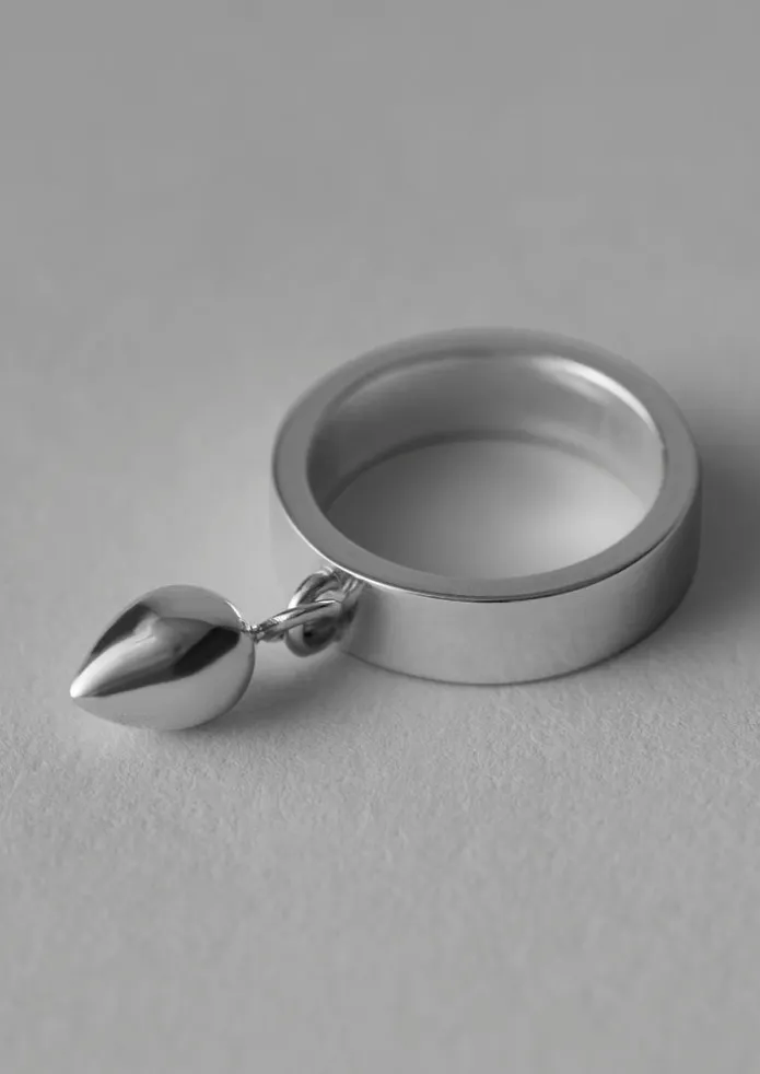 London-based jeweller Sally Lacock uses recycled sterling silver to create this Mobile Pod ring, which draws on botanical themes of growth, with a focus on renewal. Shaped to a wide ring and finished with a smooth charm. Details Recycled 925 silver. Store in bag to avoid moisture. To remove a build up of tarnish gently clean with a silver polishing cloth.Made in the United Kingdom.Size S = Ring size L. Size M = Ring size O. Size L = Ring size R. Band width 5mm. Pod length approx. 9mm.