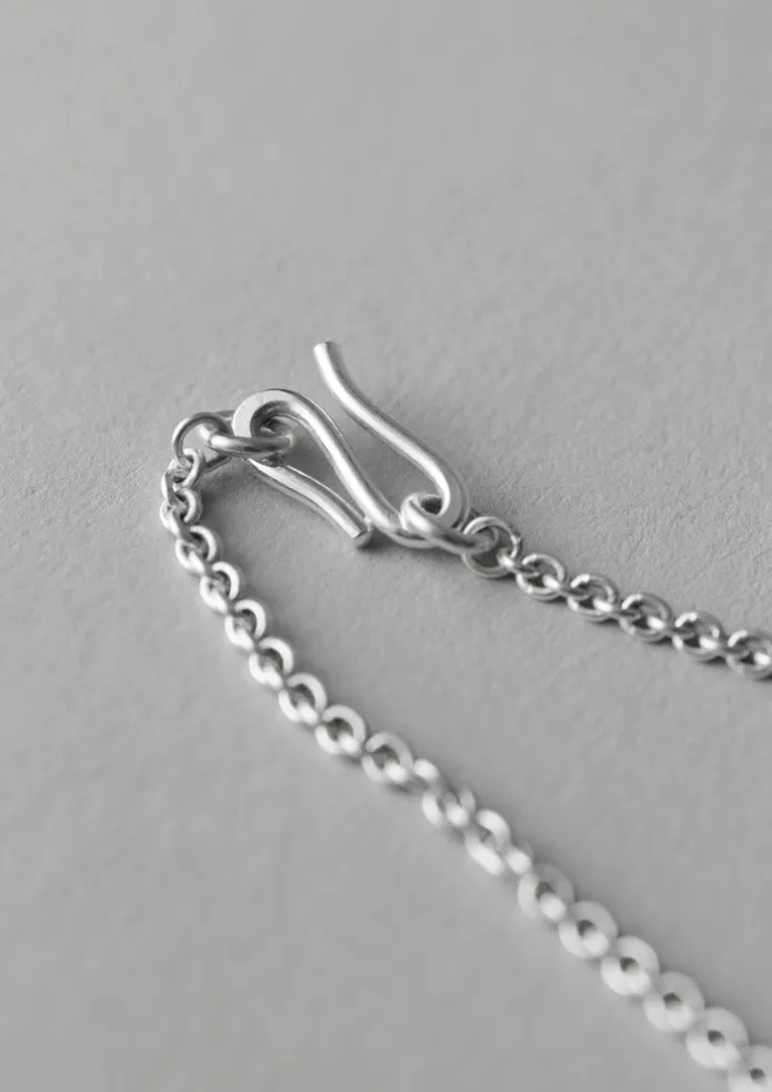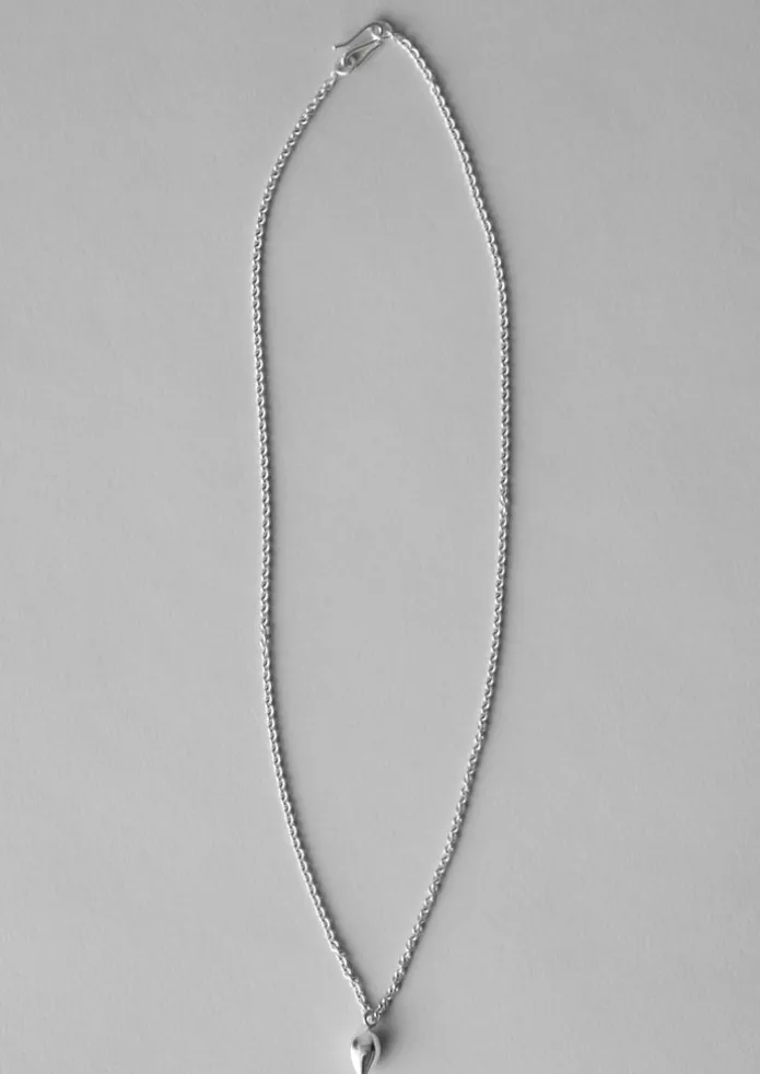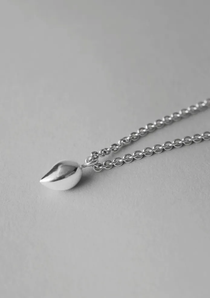 London-based jeweller Sally Lacock uses recycled sterling silver to create this Pod necklace, which draws on botanical themes of growth, with a focus on renewal. Shaped with a smooth, charm suspended from the curb-link chain, then finished with a coordinating T-bar clasp. Details Recycled 925 silver. Store in bag to avoid moisture. To remove a build up of tarnish gently clean with a silver polishing cloth.Made in the United Kingdom.Chain length fastened 45cm. Pod length approximately 11mm.