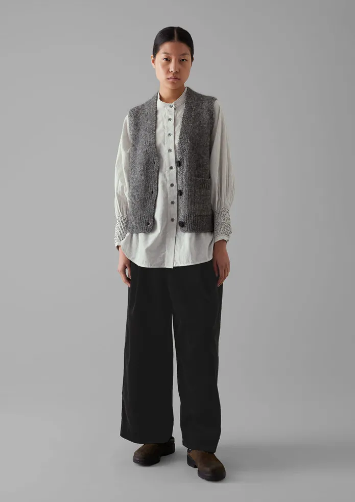 Our V-neck tank is knitted from a blend of alpaca, merino and cotton fibres for a lofty texture. Shaped to a mid-hip len…