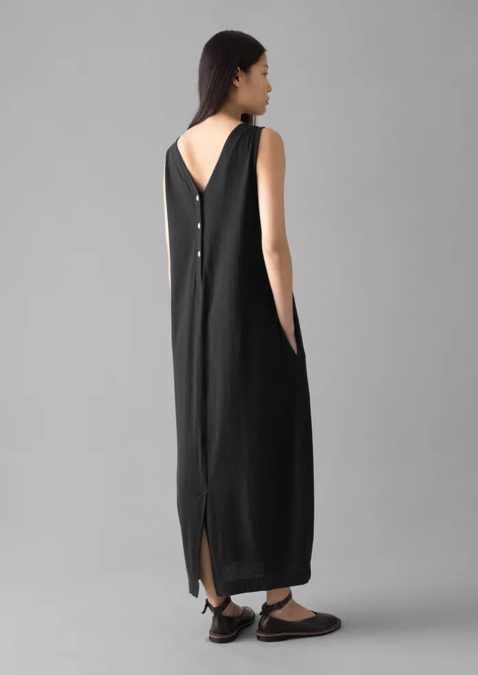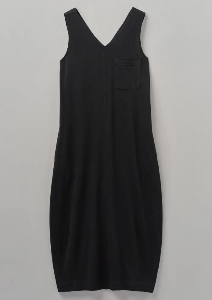 Darts at the hem of our dress create a rounded silhouette, which tapers as it falls to the lower calf. Crafted from cotton jersey with corozo buttons running down the half placket at the back. Inspired by our Lydia dress, which has been an integral part of our loungewear range for a decade. Cotton jersey. V-neck and back. Chest patch pocket. Side seam pockets. Darted tapered hem. Lower-calf length. Back half placket. Corozo buttons. Details Machine wash 30ºC. 100% cotton.Made in China.There may be some colour rub, so please keep away from light coloured fabrics and upholstery. Size & Fit Regular fit. Length: Lower calf. Sleeves: Sleeveless. Neckline: V neck.Studio model Nova is 5ft 9in/175cm tall and is wearing a size XS.