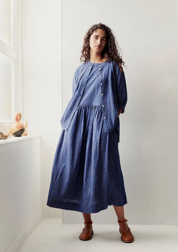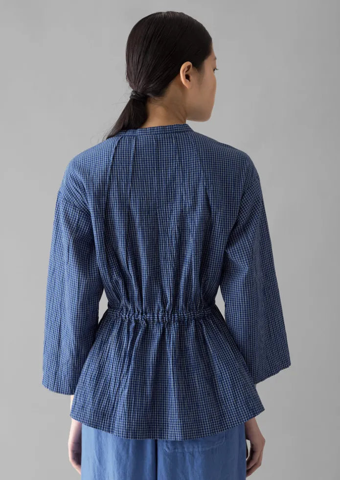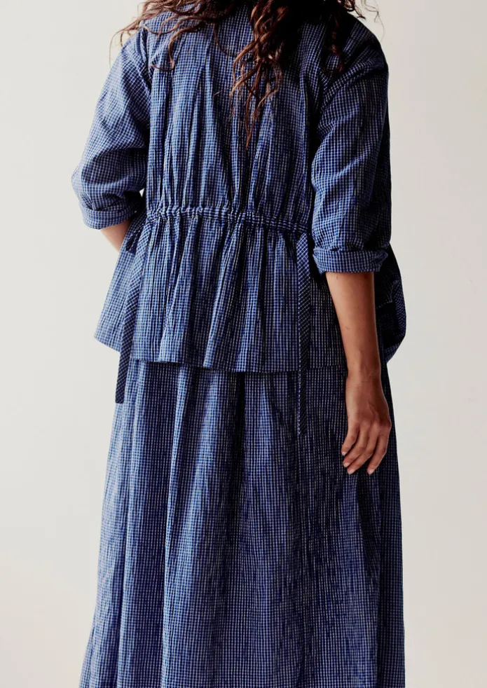 Artful pintucked darts at the neckline bring volume through the body of our shirt. Made from a check crinkle cotton with dropped sleeves and side hem slits. Check crinkle cotton. Band collar. Neck pintucked darts. Dropped sleeves. Side hem slits. Corozo buttons. Details Machine wash 30ºC. 100% cotton. Made in India. Size & Fit Regular fit. Length: Low hip. Sleeve: Bracelet length. Studio model Nova is 5ft 9in/175cm tall and is wearing a size S.