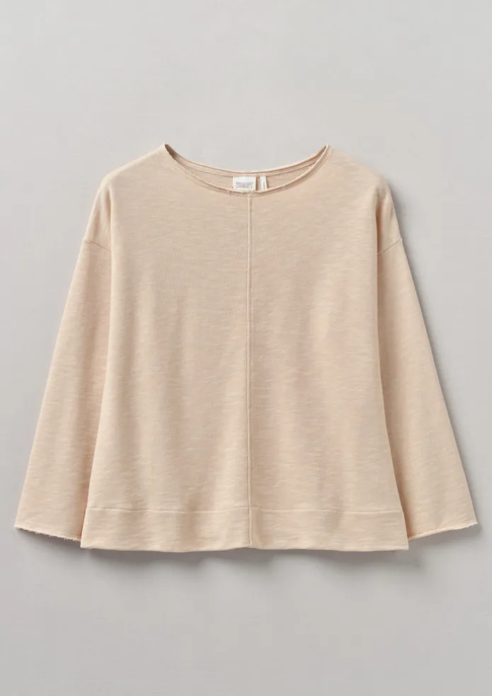 Raw edges at the neck and cuffs juxtapose the defined seams running down the front and back of our sweater. Crafted from relaxed loopback cotton jersey to an easy shape with dropped sleeves, then finished with a cotton herringbone hanging loop at the nape. Loopback cotton jersey. Easy shape. Back cotton herringbone hanging loop. Dropped bracelet-length dolman sleeves. Raw-edged neck and cuffs. Front and back central seams. Low-hip length. Details Machine wash 30ºC gentle cycle. 100% cotton.Made in Portugal. Size & Fit Easy fit. Length: Low hip. Sleeves: Bracelet length. Neckline: Crew.Studio model Kelia is 5ft 8in/173cm tall and is wearing a size S.