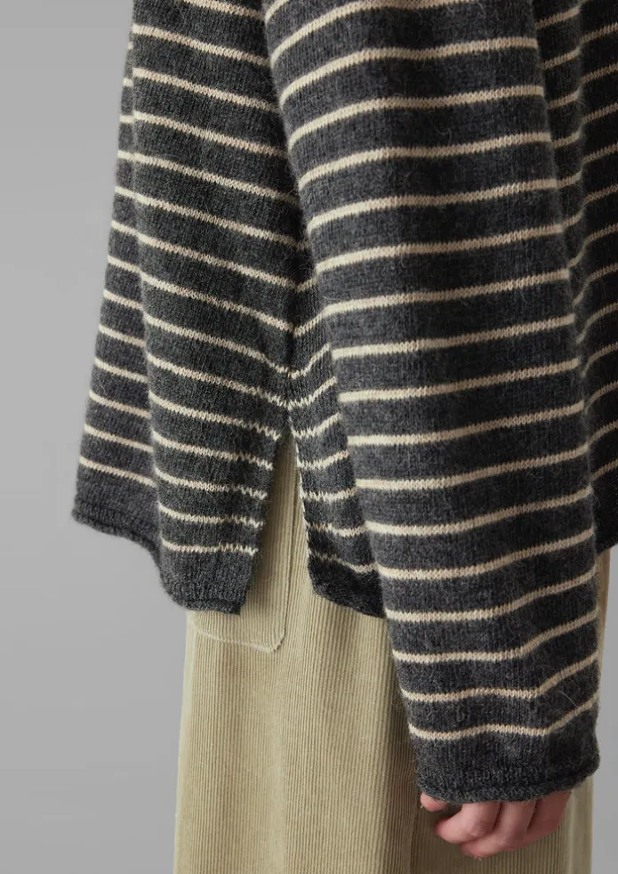 Our sweater is crafted from a tactile alpaca wool blend with a knitted stripe. Cut to an easy shape with dropped sleeves, then finished with side seams. Alpaca wool blend. Side splits. Dropped shoulders. Single jersey roll at neck and cuffs. Details Hand wash. 50% alpaca, 50% wool. Made in Portugal.Soft yarns are liable to pill to some extent, even when using those of the best quality. To take good care of them remove any pills using a pilling comb and protect them from sharp items or jewellery that may catch or snag. Size & Fit Easy fit. Length: Mid hip. Sleeve: Full length. Neck: Wide/open crew. Studio model Nova is 5ft 9in/175cm tall and is wearing a size S.