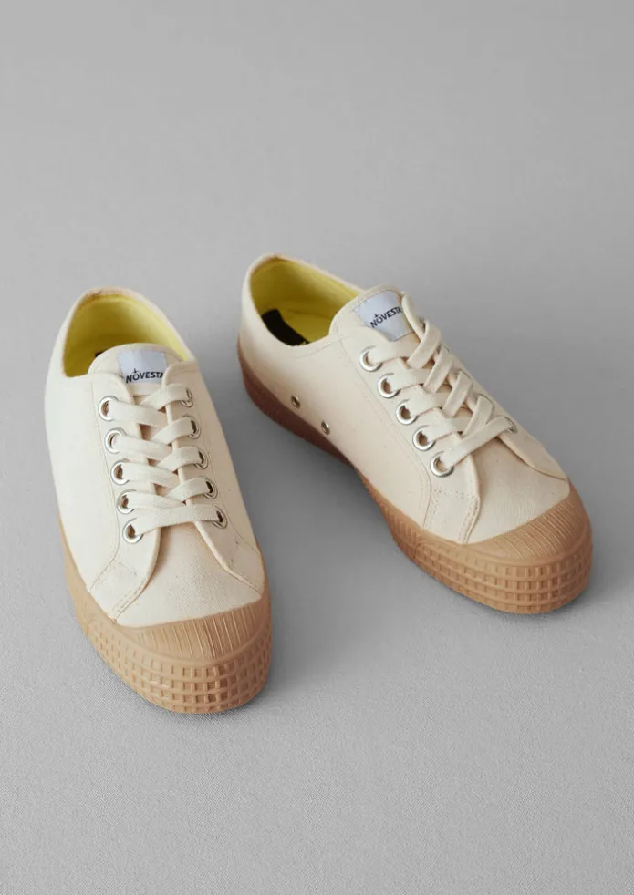 Muted plimsolls from Novesta, with a natural organic rubber sole which is machine-pressed onto the upper and finished by precise manual work to create a tire texture. Crafted using renewable energy from hardwearing organic cotton canvas, reminiscent of vintage Slovakian sports shoes. GOTS-certified organic cotton canvas. Cotton laces. Textured natural rubber sole. Details GOTS certified organic cotton upper, natural rubber sole.Made in Slovak Republic.Heel height 2.5cm.