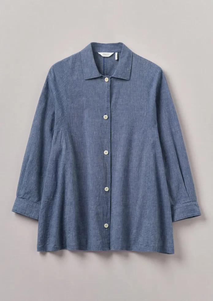 Our relaxed shirt is crafted in India from a cotton and linen chambray with a slubby texture. It is accented by large corozo buttons and cut to a swingy shape. Cotton and linen chambray. Easy shape. Point collar. Corozo buttons. Details Machine wash 40ºC gentle cycle. 80% cotton, 20% linen. Made in India. Size & Fit Easy fit. Length: Top thigh. Sleeve: Wristbone length. Studio model Nova is 5ft 9in/175cm tall and is wearing a size S.